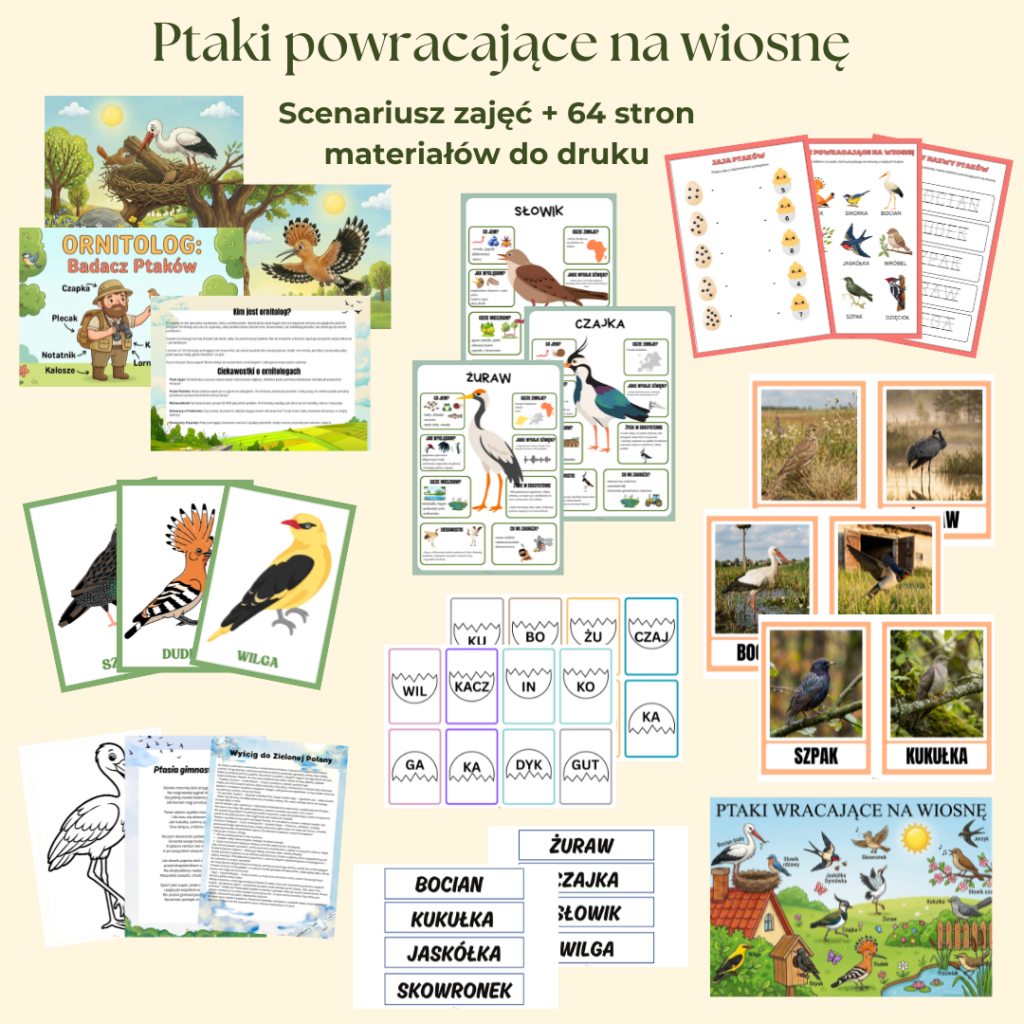 V. Scenariusz zajęć pt. „Ptaki powracające na wiosnę”, a w nim: