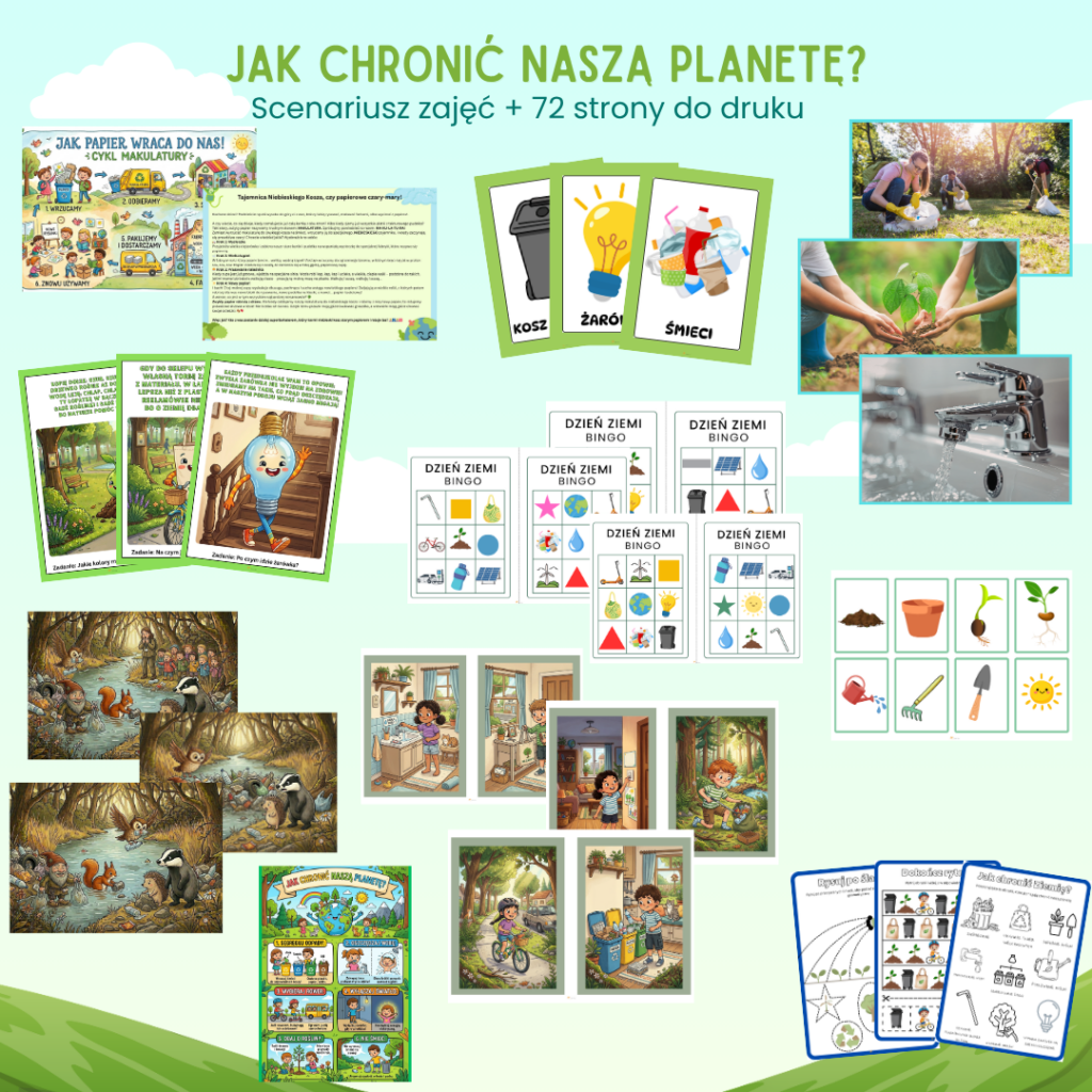 Nie musisz niczego samodzielnie szukać. Wszystko, czego potrzebujesz do zajęć ekologicznych masz w jednej paczce. Zarówno scenariusze, jak i pomoce i dodatkowe bonusy są dostępne za jednym kliknięciem.