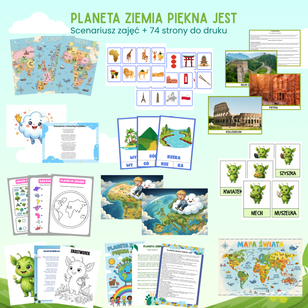 1. 🌍 Scenariusz zajęć pt. Planeta Ziemia piękna jest, a w nim takie zabawy jak: