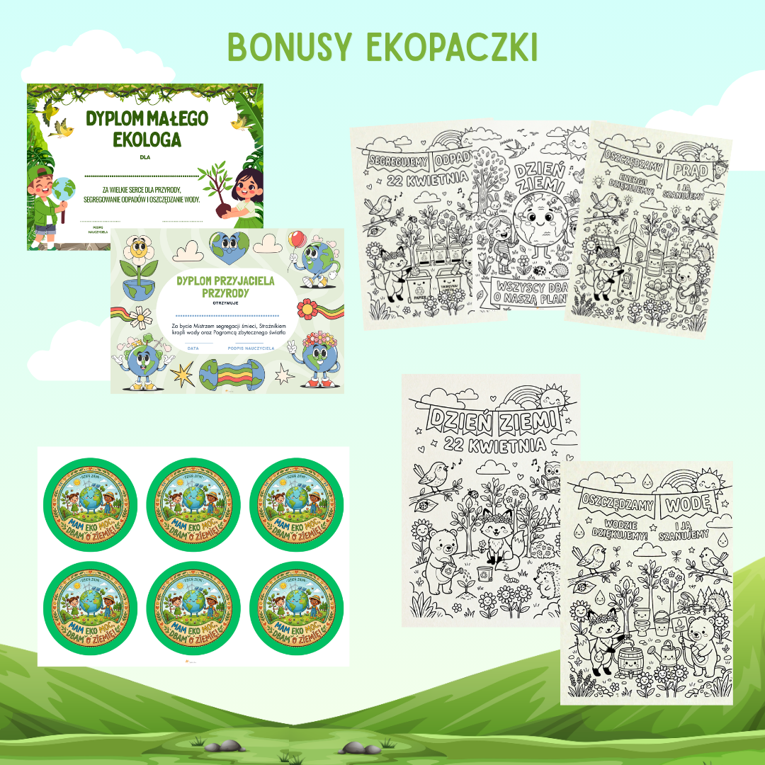 🎁 Paczka Małego Ekologa zawiera dodatkowo takie bonusy jak: dyplomy, medale i kolorowanki!